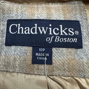 Chadwicks of Boston Blazer Womens 12P Gray Tan Plaid Wool Blend 2 Button Lined