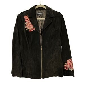 Chadwick’s of Boston Genuine Leather Suede Jacket Size 14 Black Embroidered