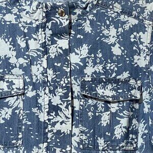 Chadwicks of Boston Size M Floral Denim Utility Jacket Zip Closure Front Pockets