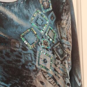 Chagall Turquoise Animal Print Sequin Embellished Lightweight Sweater Sz. XL