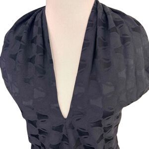 Chaiken Dark Navy Short Puff Sleeves Patterned Casino Wrap Halter Top Size 6