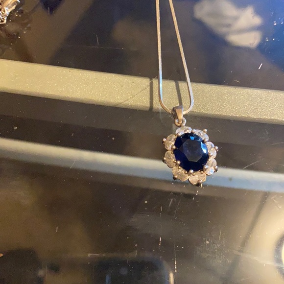 Sapphire sterling chain vintage Beatiful stone with diamonds