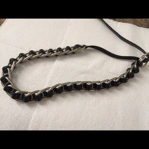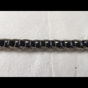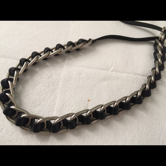 Black leather and silver chain ajustable belt. Great condition.