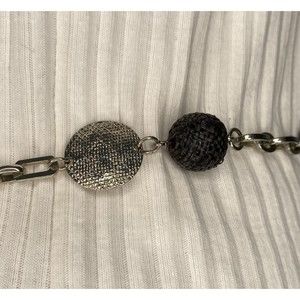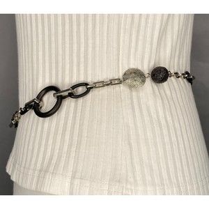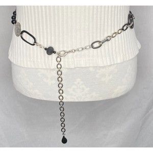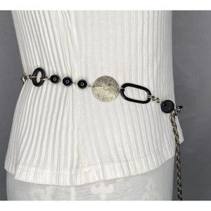 Chain Belt Multi Geometric Shape Interlocking Silver Links Black Beads + Rings