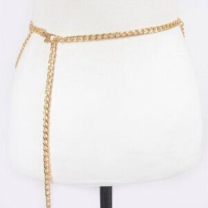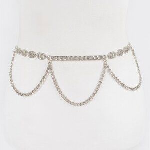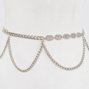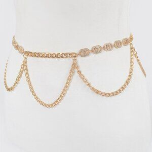 The Chain Belt w/ Stone adds luxurious sparkle to your look with its delicate rhinestone accents and polished chain design. Perfect for cinching the waist or adding definition to a flowy silhouette, this belt is a must-have for eveningwear or elevating everyday pieces.