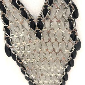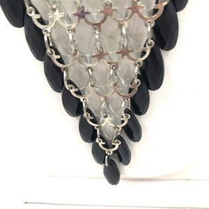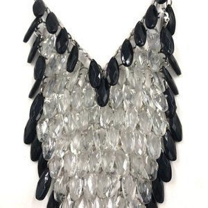 Chain Black Clear Tear Drop Beads Fringe Necklace 20” BIB Statement