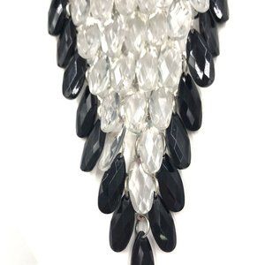 Silver tone chain Black and Clear faceted Tear Drop Beads Fringe Necklace