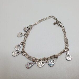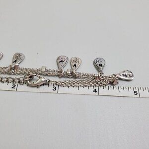 Chain Bracelet Silver Tone Charms Love Joy Peace Teardrop Multi Strand