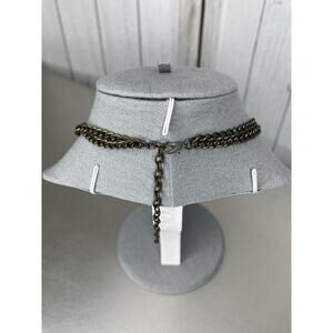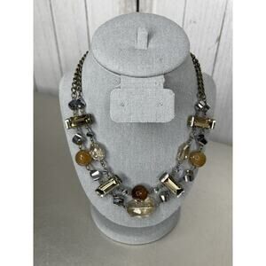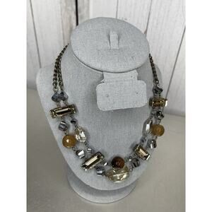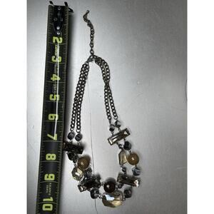 Chain Chunky Statement Necklace Rhinestone Silver Brown Tones Beaded
