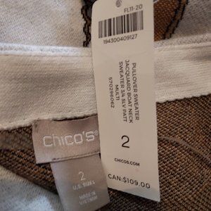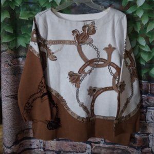 3/4 Sleeve Classic chain, belt and floral motifs give this bateau-neck sweater its chic style, fashioned in a super soft cotton-blend knit