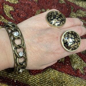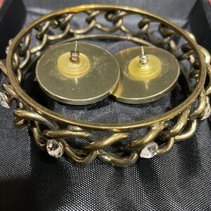 Chain Link Bangle Round Earrings Set