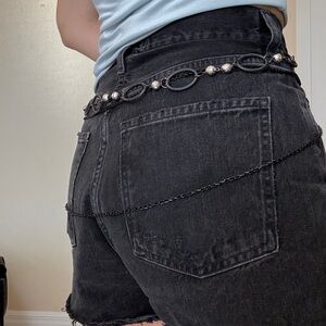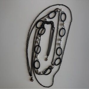 Three layers of detail, two layers are think chains middle layer is links with disco ball looking beads. Adorable to add over a maxi skirt or embellishment for a large bag. The clasp is not a traditional “belt” more like two clasps.