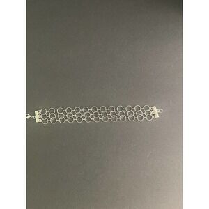 Chain Link Silver Plated Triple Row Lightweight Lobster Closure 7.5” Bracelet