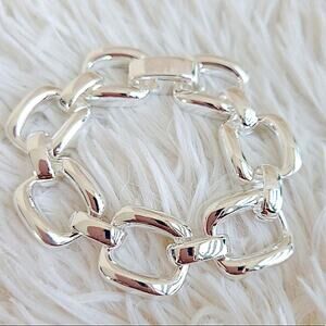 New sterling silver stamped 925 hollow out geometric design chain link bracelet measures 18cm.