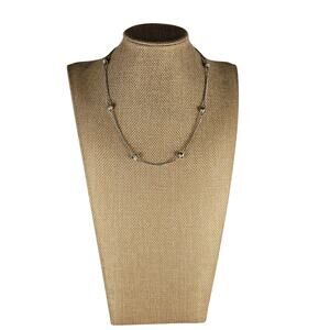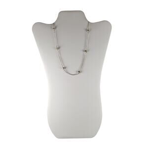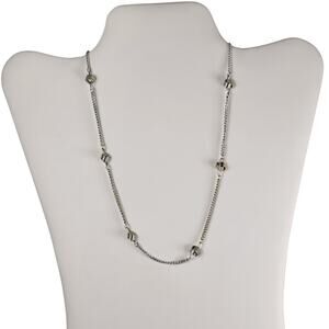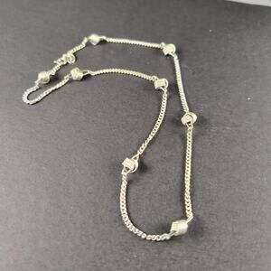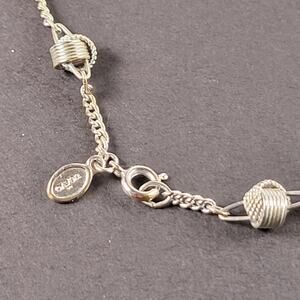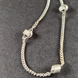 Vintage Avon silver-tone chain necklace with knot stations, measuring 17 inches in length. Features a classic and timeless design with a secure spring ring clasp.