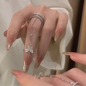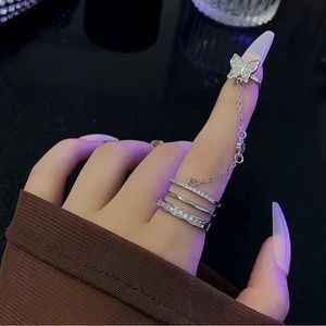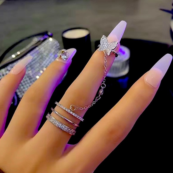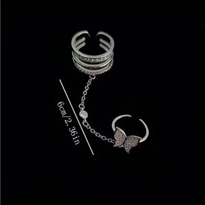 Chain Open Ring Inlaid Rhinestone Delicate Jewelry, Adjustable Opening