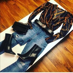 Chain Print Navy Blue Bodysuit. Sheer