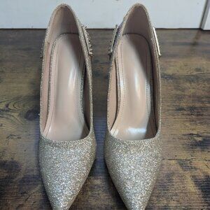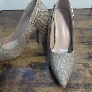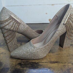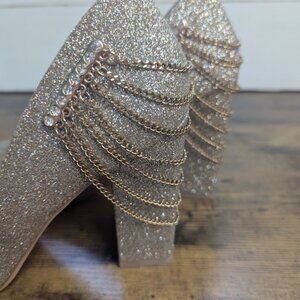 Chain & Rhinestone Decor Glitter Chunky Court Pumps