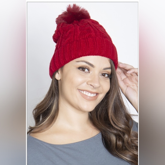 Chain Rib Knit Pattern Beanie Red