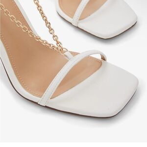 A chic heeled sandal with a trendy gold chain across the ankle. These heels are the perfect pick as we head into warmer weather. Pair with dresses and skirts for easy styling.