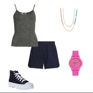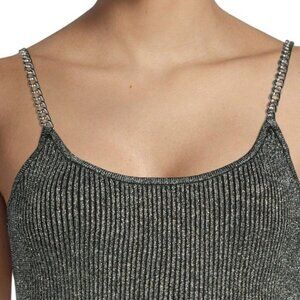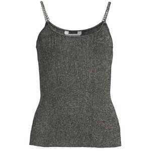 Chain Strap Tank Top Sweater Women Large 11-13 Black Silver Metallic Sleeveless