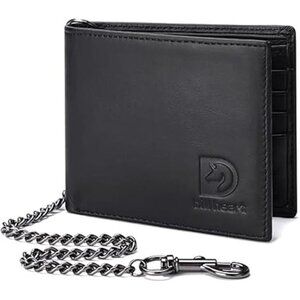 Chain Wallets for Men, RFID Blocking Genuine Leather Bifold Wallet