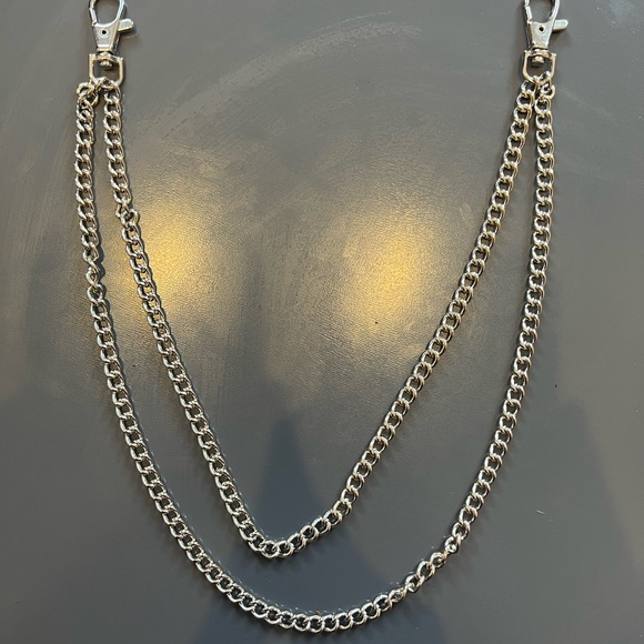 Silver chain accessory perfect for belt loops! Multi-use to spice up any look, especially great for streetwear vibes!