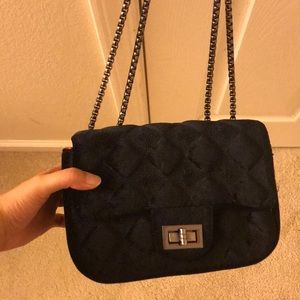 Black small chain bag can be crossbody..