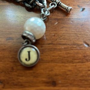 3 different chains bracelet. J charm with white balls cj “diamond” round charm. 8.5 “ in length.