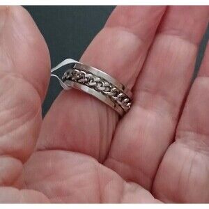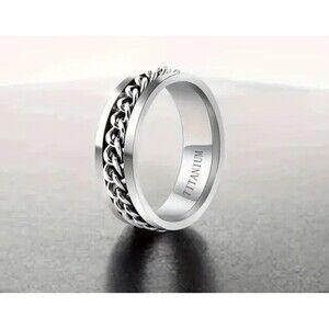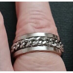 Chain link Silver Ring Titanium Steel Ring Jewelry Gift Size 8 Biker Goth