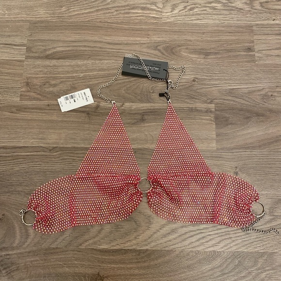 Hot pink chain link top from Hottie decked out in rhinestones. Originally bought for edc outfit but didn’t end up wearing. Super cute and fun top for a night out. Size S/M, never work before, NWT.