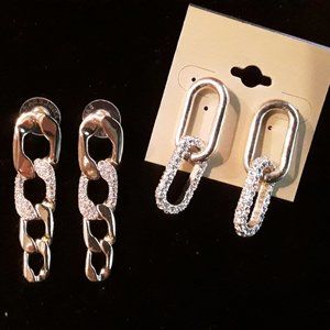 Chain look gold color post earrings with silver rhinestones (lot of 2)