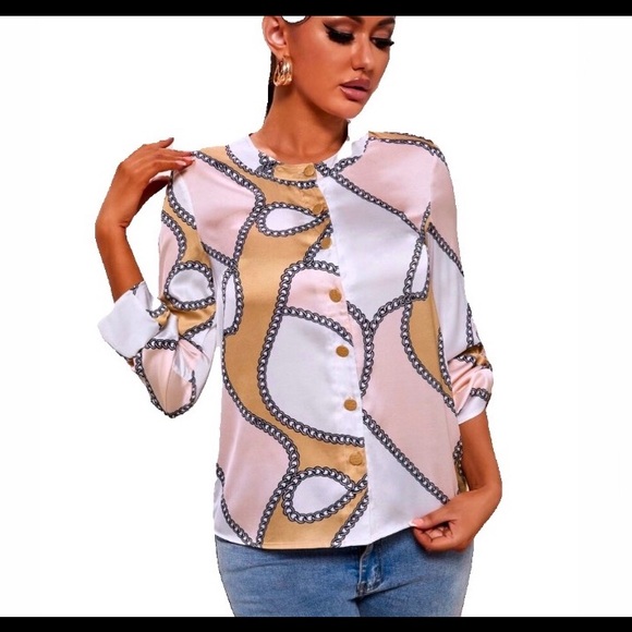 Chain print button down shirt