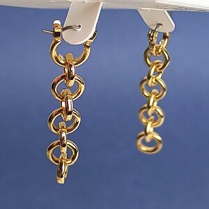 Chain-Linear Hoop Dangle Earring Gold Tone Click-Top Casual street Everyday