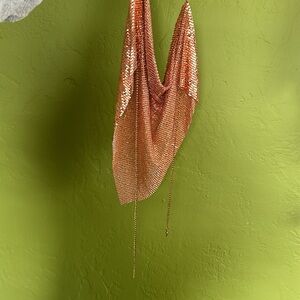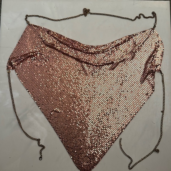 Bought at a boutique maybe two years ago but never worn. It’s like a necklace around your body so I’d say the sizing is pretty broad since you can adjust but I was a medium at the time I bought it.