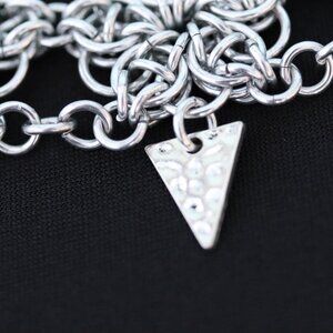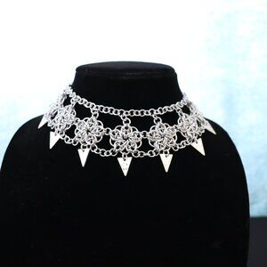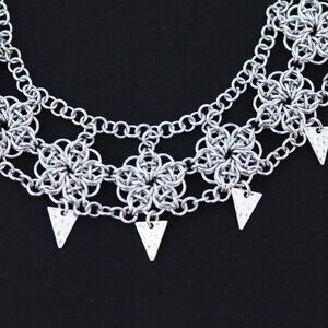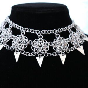 Chainmaille Choker Necklace Flower Pattern w/ Hammered Triangle Charms