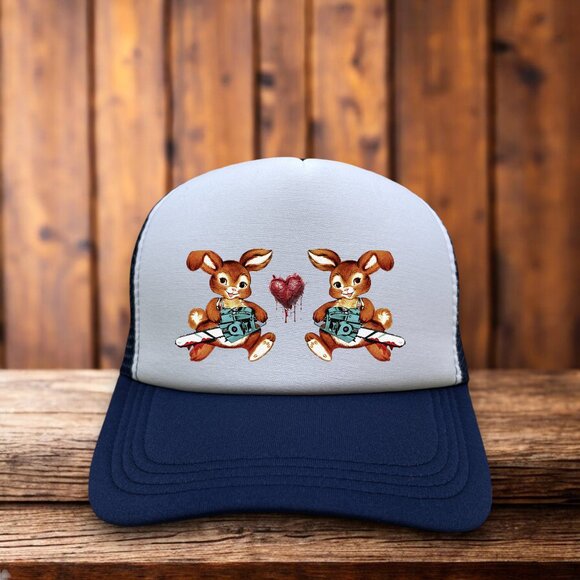 Chainsaw Bunny Heart Unisex Trucker Hat Navy Snapback Horror Baseball Cap
