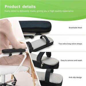🧿🌈QUALITY MATERIAL The desk chair armrest pads are made of Breathable Mesh and Memory Foam with Cooling Gel Pad Top for the most comfortable fit on your arm and elbow. An anti-slip fabric has been added, which ensures fixing of pads on the chair. These chair armrests have free removable cover mediated with a convenient zipper that allows the cover to be machine washed anytime for easy cleaning. We ensure Comfort with the necessary cleanliness.