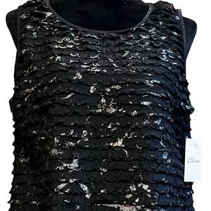 Chais black and metallic gold ruffle tier tank tropical escape size L large NWT