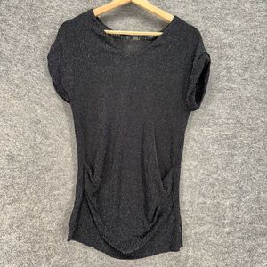Chaize Blouse Women M Medium Black Short Sleeve Round Neck Pullover Casual