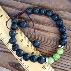 Chakra Bracelet Green Aqua Terra Jasper Black Lava Stones