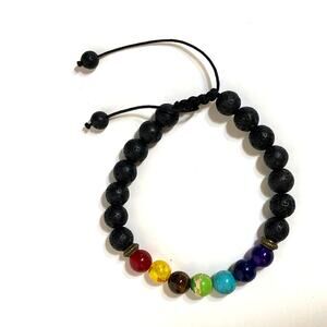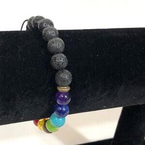 Chakra Bracelet Lava Stone Black Rainbow Adjustable Unisex Gemstone Healing
