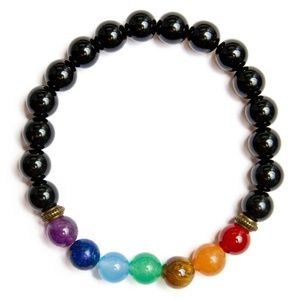 Chakra Bracelet with Black Agate Crystals - Unisex Stretch Bracelet