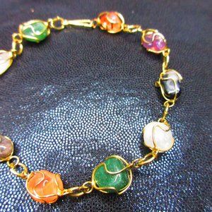 Chakra Gemstone Gold Wire Wrapped Nugget Bracelet Healing Semi Precious Natural