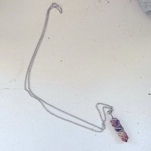 Silver tone chakra gemstone necklace on a 23 inch silver tone chain. A beautiful piece of jewelry to add to your collection!