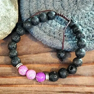 Chakra Healing Gemstone Bracelet Purple Aqua Terra Jasper Black Lava