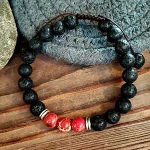 Chakra Healing Gemstone Bracelet Red Aqua Terra Jasper Black Lava
