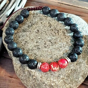 Chakra Healing Gemstone Bracelet Red Aqua Terra Jasper Black Lava
