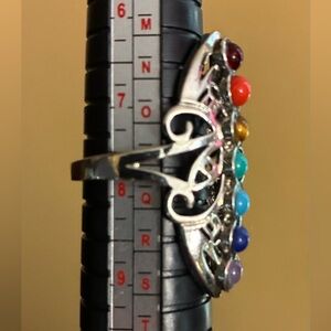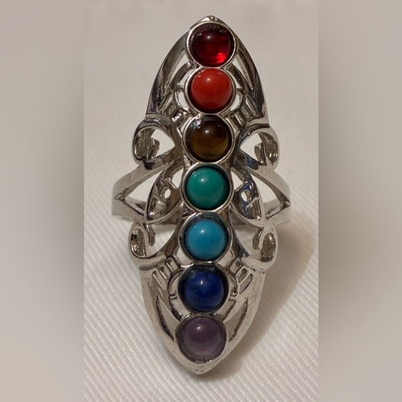 Cool silver ring featuring genuine multicolor stones set in a chakra lineup