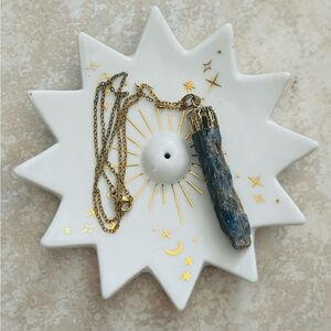 This wonderful candle has 7 different color layers with each essential oil scent associated with each chakra with its associated crystal in each layer. Made out of soy wax and is 16 oz candle.